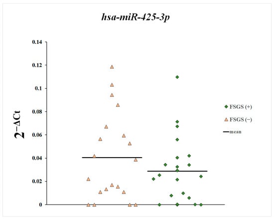 Plasma levels of miR-425-3p in patients with and without diagnosed focal segmental glomerulosclerosis.