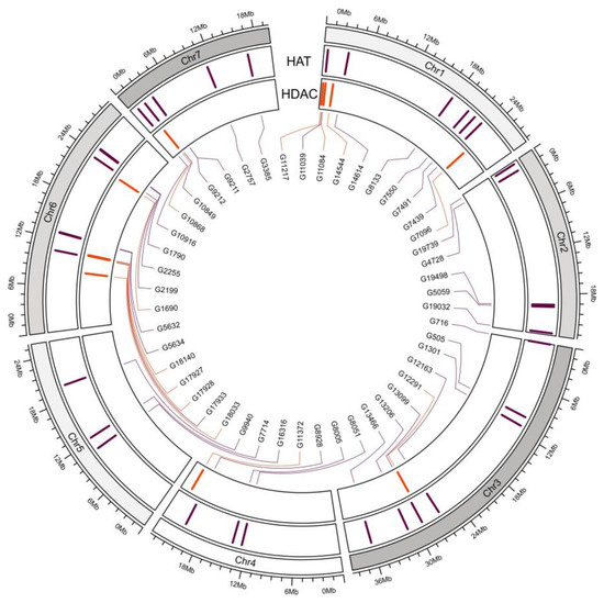 HATs and HDACs perform crucial roles in the developmental processes of plants, including flowering timings and regulation of seed, flower, leaf, and root growth, as well as fruit development and ripening-related phytohormone metabolism and plant responses to biotic and abiotic environmental stresses [14,15].
