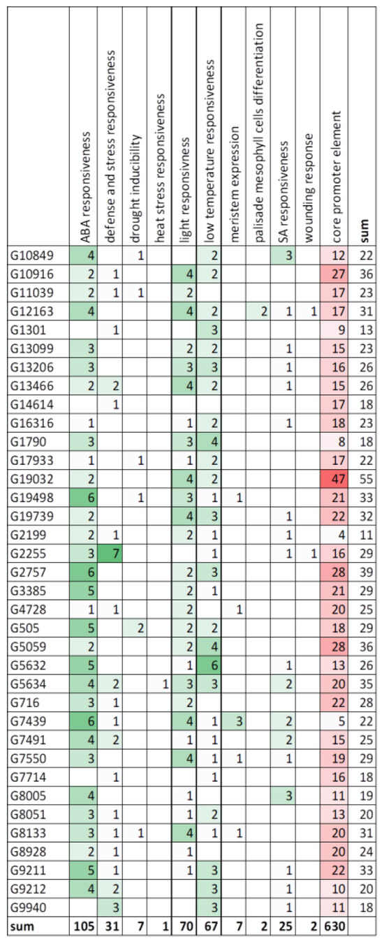 2.6. Cis-Acting Elements in Promotor Regions