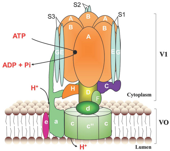 - Cotter, K.; Stransky, L.; McGuire, C.; Forgac, M. Recent insights into the structure, regulation, and function of the V-ATPases. Trends Biochem. Sci. 2015, 40, 611–622. [Google Scholar] [CrossRef] [PubMed]