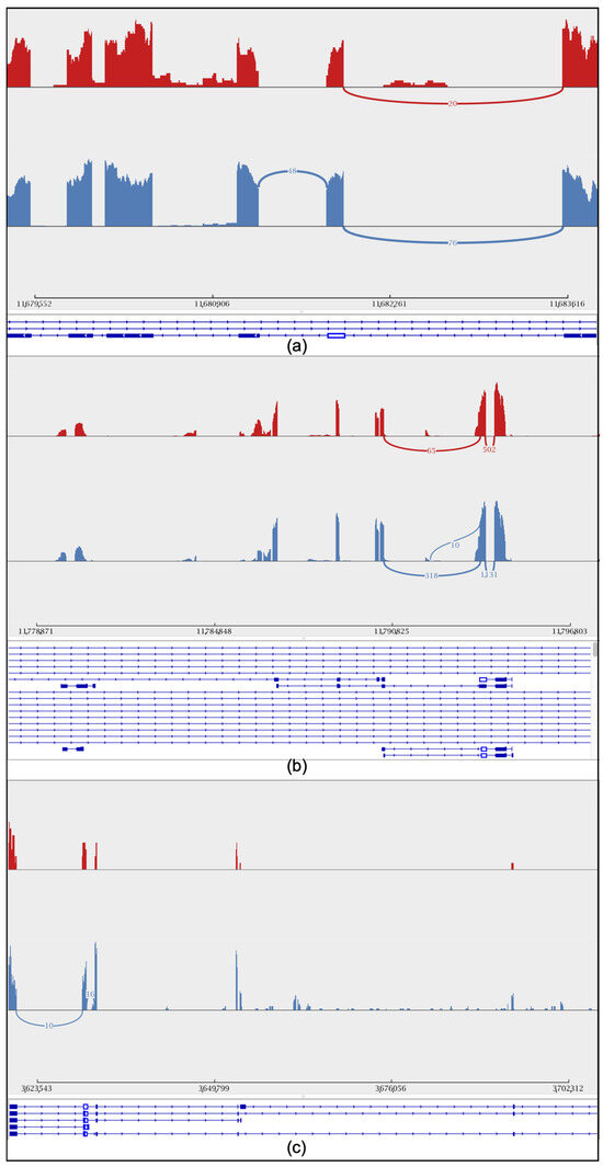 3.4. Analysis of Sex-Specific Alternative Splicing