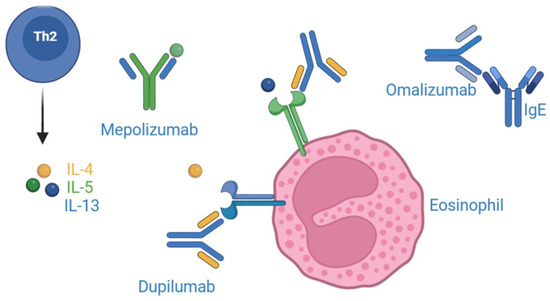 - Pelaia, C.; Paoletti, G.; Puggioni, F.; Racca, F.; Pelaia, G.; Canonica, G.W.; Heffler, E. Interleukin-5 in the Pathophysiology of Severe Asthma. Front. Physiol. 2019, 10, 1514. [Google Scholar] [CrossRef]