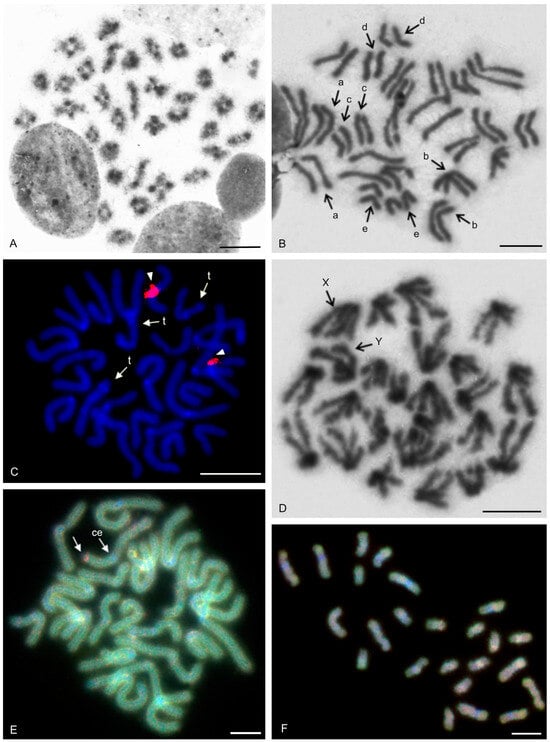- McGregor, H.C. Introduction to Animal Cytogenetics; Chapman & Hall: London, UK, 1993. [Google Scholar]