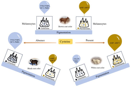 - Yang, G.L. Study on the regulation mechanism of fur color formation in animals. Heilongjiang Anim. Sci. Veter. Med. 2014, 5, 45–48. [Google Scholar]