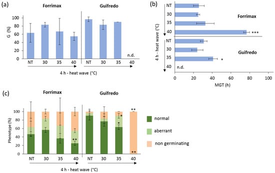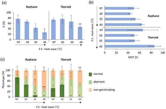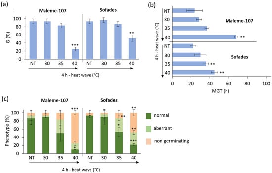 3.1. Threshold for the Heat Stress Tolerance at the Seed Germination Level