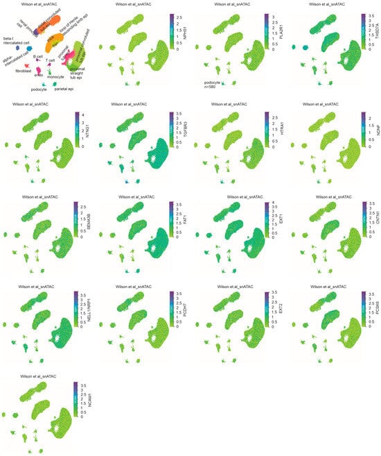 - Wilson, P.C.; Muto, Y.; Wu, H.; Karihaloo, A.; Waikar, S.S.; Humphreys, B.D. Multimodal single cell sequencing implicates chromatin accessibility and genetic background in diabetic kidney disease progression. Nat. Commun. 2022, 13, 5253. [Google Scholar] [CrossRef]