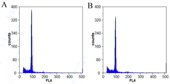 Ploidy levels of M25 (A) and Newhall (B) navel orange were monitored by flow cytometry. The ordinate indicates the number of cells, and the ordinate indicates the relative intensity of the fluorescence signal.