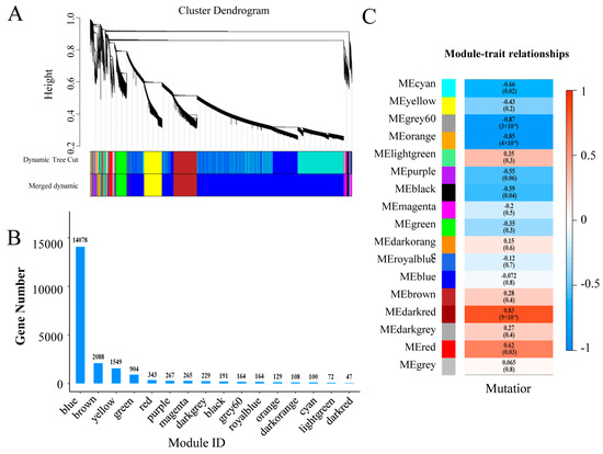 - Langfelder, P.; Horvath, S. WGCNA: An R package for weighted correlation network analysis. BMC Bioinform. 2008, 9, 559. [Google Scholar] [CrossRef]
