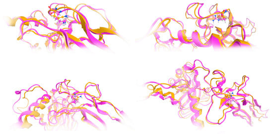 Investigation of structural integrity upon molecular dynamics simulations. Molecular dynamics (MD) simulations are a powerful computational tool used to explore the behavior and properties of molecular systems over time. One of the key applications of MD simulations is the investigation of structural integrity, which involves studying the stability and resilience of molecular structures under various conditions. This approach provides valuable insights into the physical and chemical characteristics of molecules, especially in fields such as biochemistry, materials science, and drug discovery. The model of the mutant TGFB2 299Q (magenta ribbon) was superposed to the final model upon MDs in various poses/viewpoints (orange ribbon).