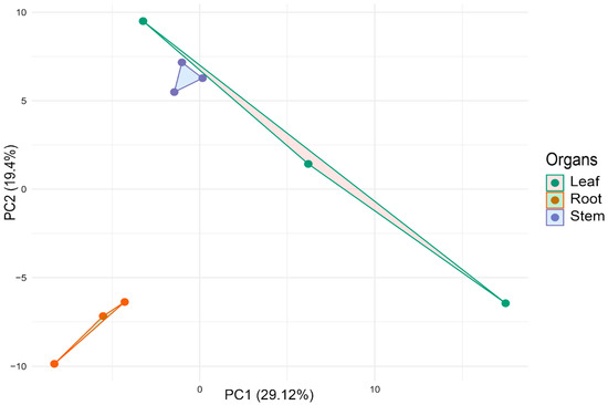Additionally, a separate PCA using only novel microRNAs demonstrated clear segregation among sacha inchi organs (Figure S1), further confirmed by PERMANOVA analysis with a p-value of 0.0046 (Table 2).