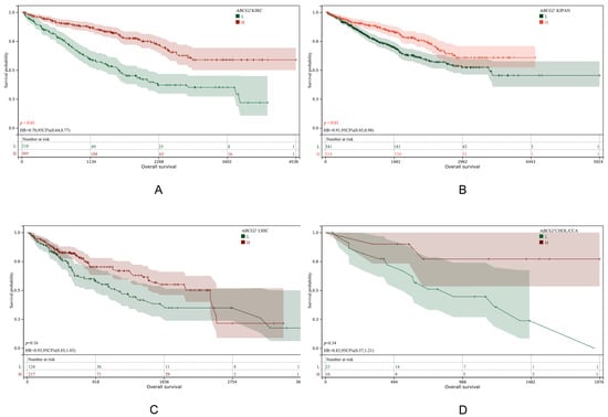 KM plot of ABCG2 expression in KIRC (A), KIPAN (B), LIHC (C) and CHOL(CCA) (D).