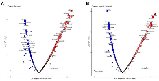 3.2. Prognostic Survival Analysis of SLC Genes