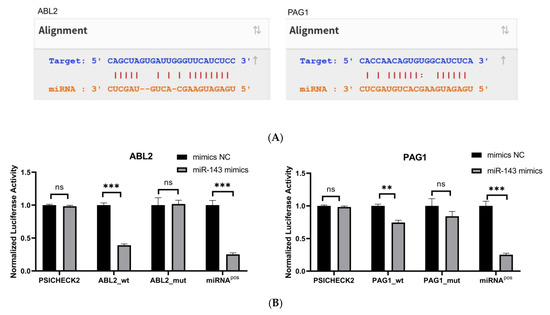3.3. ABL2 and PAG1 Are Target Genes of miR-143-3p in T Cells