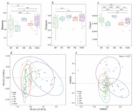 - Bai, D.; Ma, C.; Xun, J.; Luo, H.; Yang, H.; Lyu, H.; Zhu, Z.; Gai, A.; Yousuf, S.; Peng, K.; et al. MicrobiomeStatPlots: Microbiome statistics plotting gallery for meta-omics and bioinformatics. iMeta 2025, 4, e70002. [Google Scholar] [CrossRef]