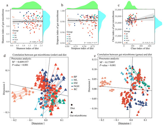 3.5. The Relationships Between Diet Diversity and Gut Microbiome Diversity