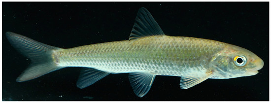 - Shan, X.H.; Lin, R.R.; Yue, P.Q.; Chu, X.L. Barbinae. In Fauna Sinica Osteichthyes: Cypriniformes (III); Yue, P.Q., Ed.; Science Press: Beijing, China, 2000; pp. 126–130. [Google Scholar]