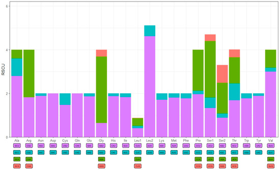 Base composition, codon usage of protein-coding genes (PCGs), and relative synonymous codon usage (RSCU) values were calculated using MEGA v7.0.26. Figures were then generated using the ggplot2 package in R v4.3.2 [23,24]. Base composition skew values were computed as follows: AT skew = (A − T)/(A + T) and GC skew = (G − C)/(G + C) [25].
