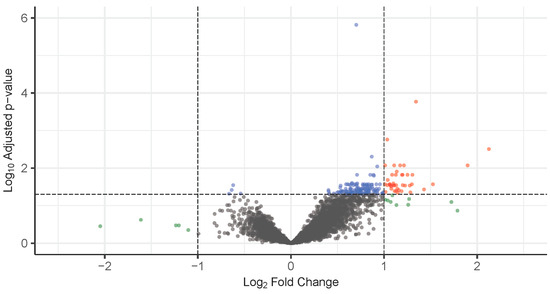 - Love, M.I.; Huber, W.; Anders, S. Moderated Estimation of Fold Change and Dispersion for RNA-Seq Data with DESeq2. Genome Biol. 2014, 15, 550. [Google Scholar] [CrossRef]