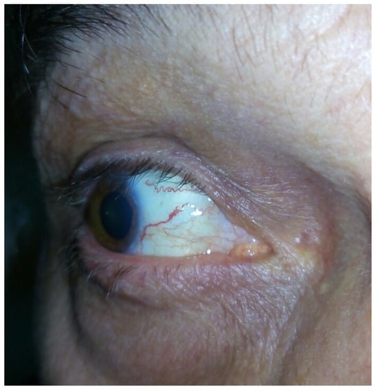 Conjunctival telangiectasia of patient 9, aged 63 years.