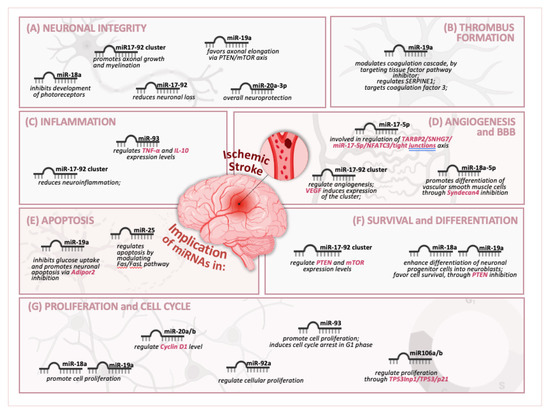 The miR-17-92 cluster plays a role in neuronal growth and differentiation. Alterations in its expression can affect neurogenesis, which is essential for brain repair and functional recovery after a stroke. The miRNAs in this cluster can influence synaptic plasticity, vital for cognitive and functional recovery following stroke [49].