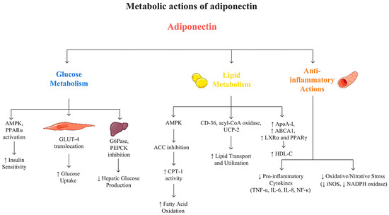 In summary, adiponectin serves as an essential regulator of glucose metabolism and insulin sensitivity. Its ability to modulate multiple metabolic and inflammatory pathways highlights its therapeutic potential in the prevention of metabolic disorders such as type 2 diabetes or insulin resistance.