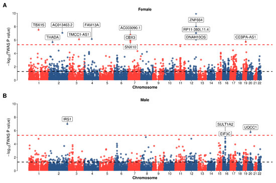 - Gusev, A.; Ko, A.; Shi, H.; Bhatia, G.; Chung, W.; Penninx, B.W.; Jansen, R.; de Geus, E.J.; Boomsma, D.I.; Wright, F.A.; et al. Integrative approaches for large-scale transcriptome-wide association studies. Nat. Genet. 2016, 48, 245–252. [Google Scholar] [CrossRef]