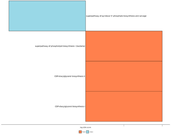 Statistically significant different predicted pathway with LDA score > 2.0 between BC patients from urban and rural areas.