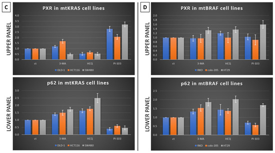 23]. Based on our experiments, PXR expression is dependent on the autophagy mechanism. As was identified through our experiments, the knockdown of PXR did not affect autophagy levels after treatment with Irinotecan. Moreover, the lack of PXR expression leads to apoptotic cell death due to Irinotecan treatment, despite high levels of autophagy, demonstrating the positive effect of autophagy in PXR expression. mtKRAS CRC cell lines were treated with autophagy inhibitors 3-MA and HCQ and autophagy inducer PI-103 [