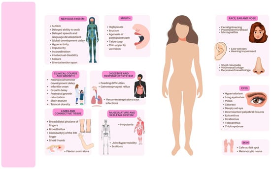 18]. Among the 30 highlighted phenotypes, the proband exhibited 25 of them and did not exhibit 5, namely microcephaly, hypertrichosis, keloids, cardiac anomalies, constipation, and urinary tract anomalies (