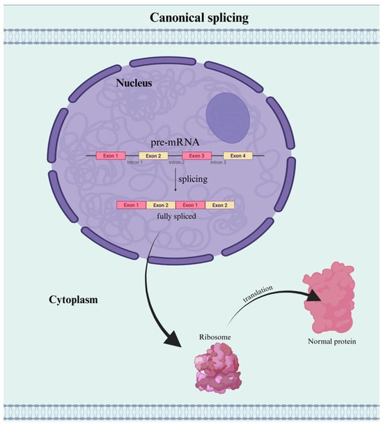 Before discussing IR, it is important to revisit the mechanism of canonical RNA splicing. In most eukaryotic cells, RNA splicing is a fundamental post-transcriptional mechanism that removes non-coding introns from precursor messenger RNA (pre-mRNA) and joins together protein-coding exons to produce a mature, translatable mRNA transcript. This process is essential for accurate gene expression and proteome integrity [13].