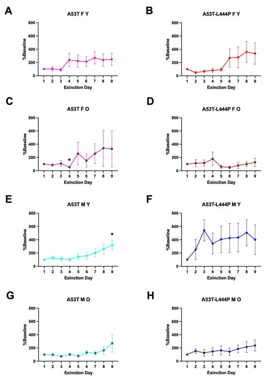 Bunnell E, Saltonstall E, Pederson A, Baxter C, Ramicciotti E, Robinson N, Sandholm P, O′Niel A, Raber J. Extinction of Contextual Fear Memory and Passive Avoidance Memory and Subsequent Anxiety-like and Depressive-like Behavior of A53T and A53T-L444P Mice. Genes. 2025; 16(9):1004. https://doi.org/10.3390/genes16091004