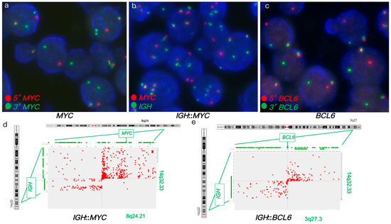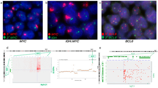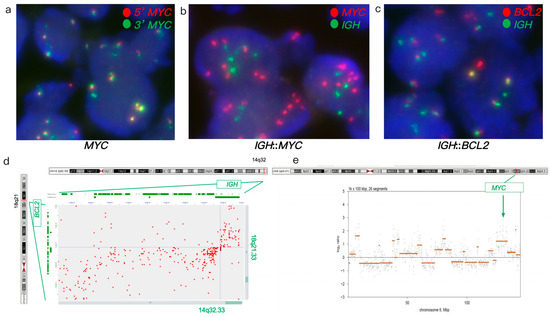 - King, R.L.; McPhail, E.D.; Meyer, R.G.; Vasmatzis, G.; Pearce, K.; Smadbeck, J.B.; Baughn, L.B. False-negative rates for MYC fluorescence in situ hybridization probes in B-cell neoplasms. Haematologica 2019, 104, e248–e251. [Google Scholar] [CrossRef]