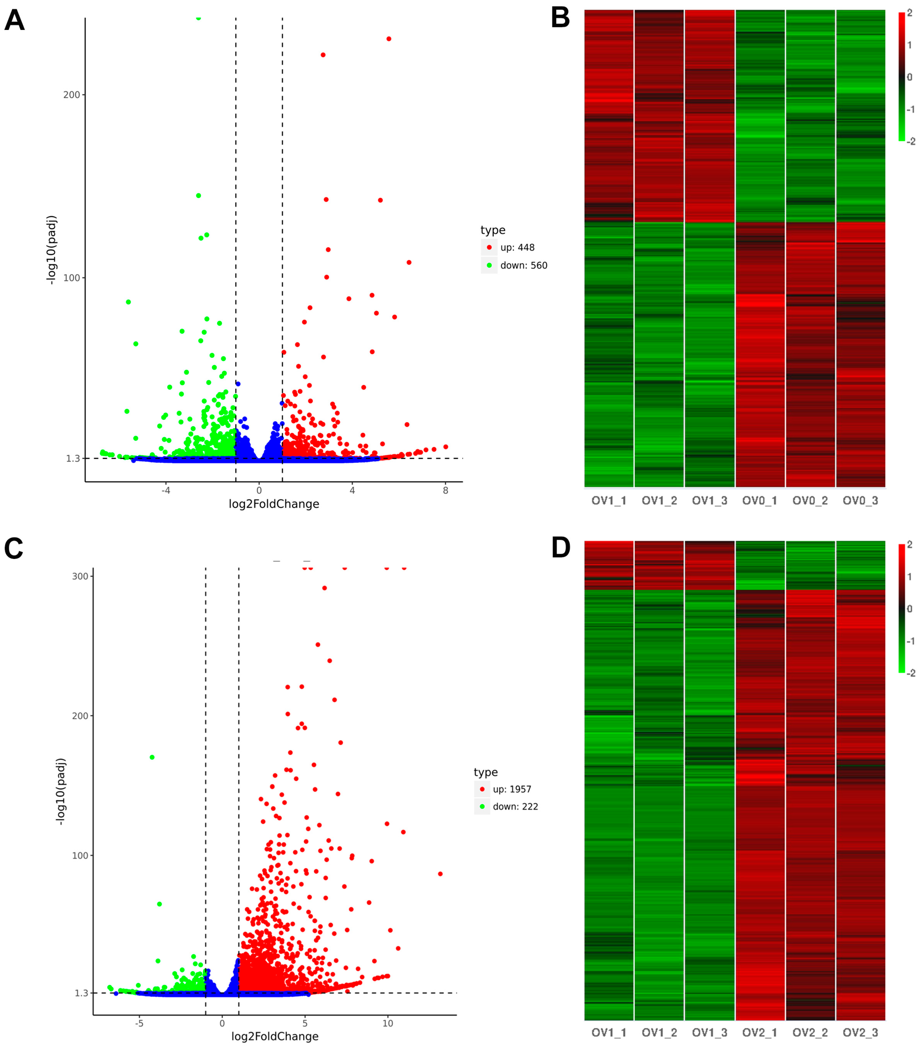 GeneID | FPKM (OV0) | FPKM (OV1) | log2FC | padj | NR Description |