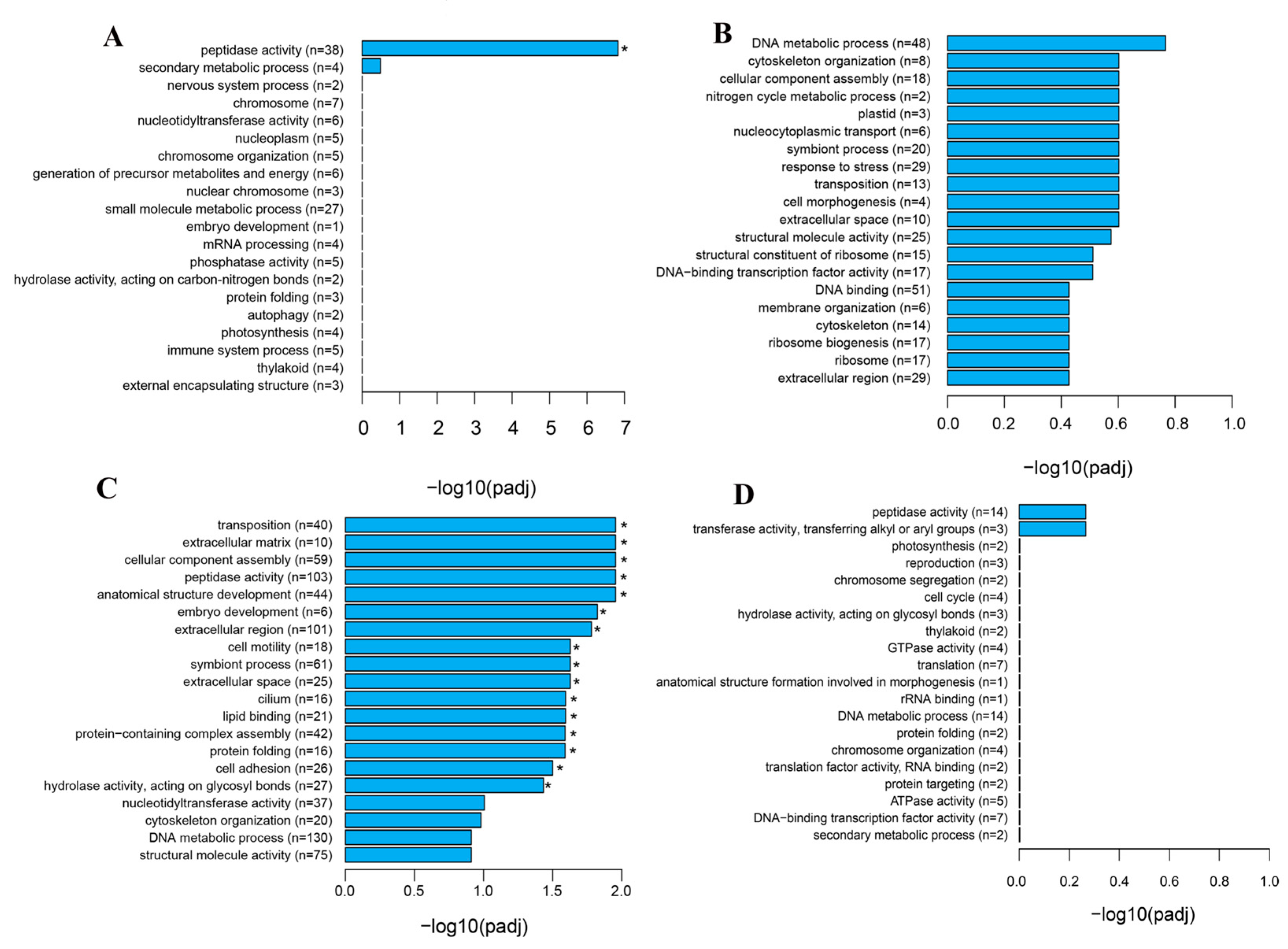 - Young, M.D.; Wakefield, M.J.; Smyth, G.K.; Oshlack, A. Gene ontology analysis for RNA-seq: Accounting for selection bias. Genome Biol. 2010, 11, R14. [Google Scholar] [CrossRef] [PubMed]