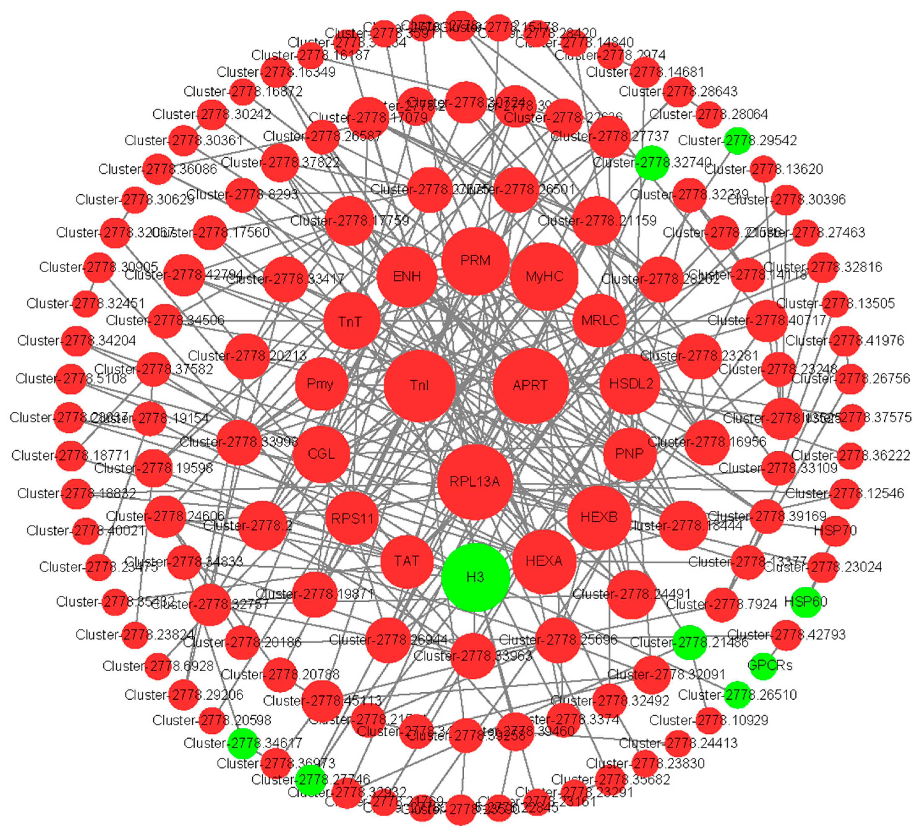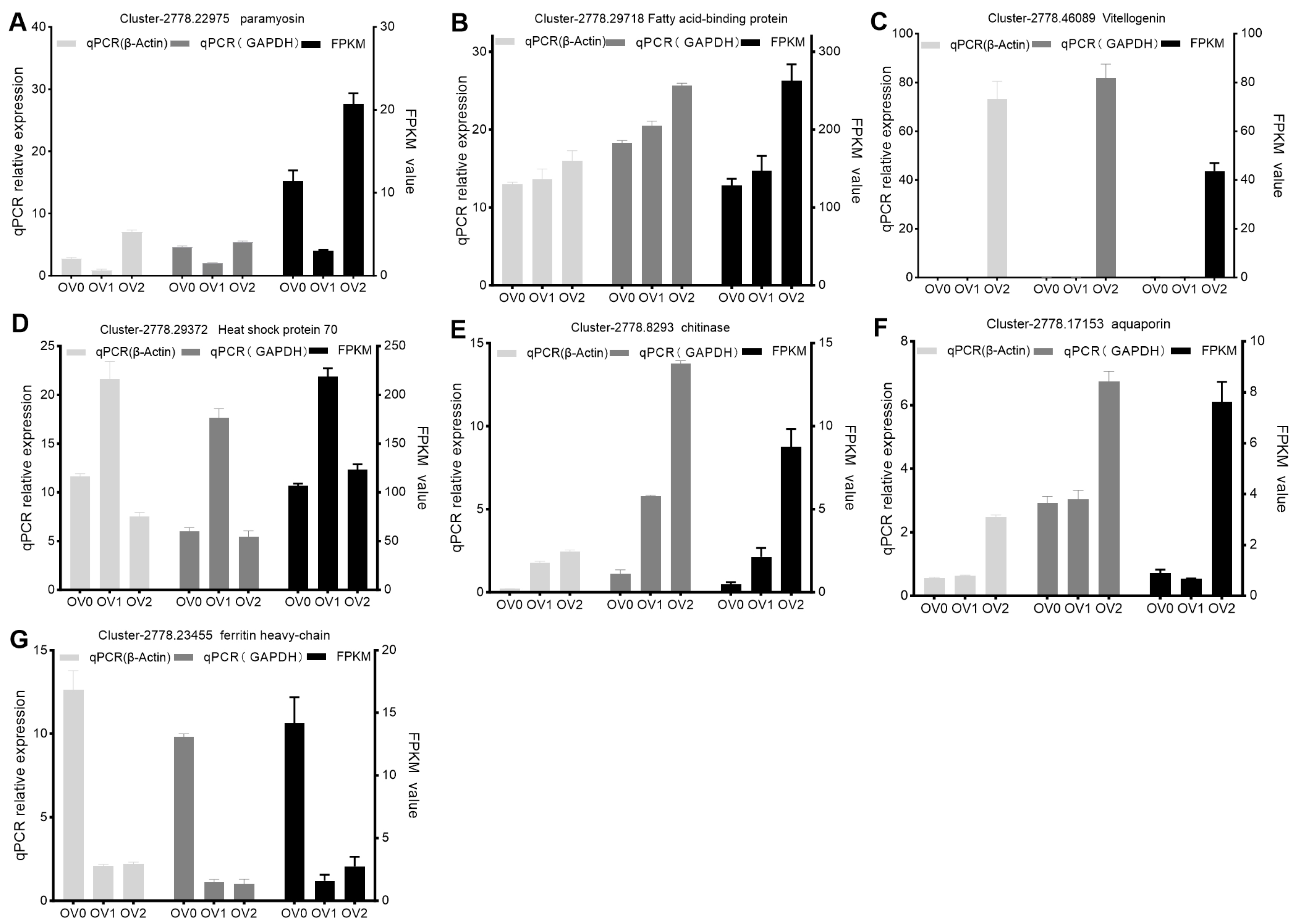 Cluster-2778.46089 | 0.05 | 43.693 | 9.9447 | 1.30 × 10−126 | vitellogenin |
