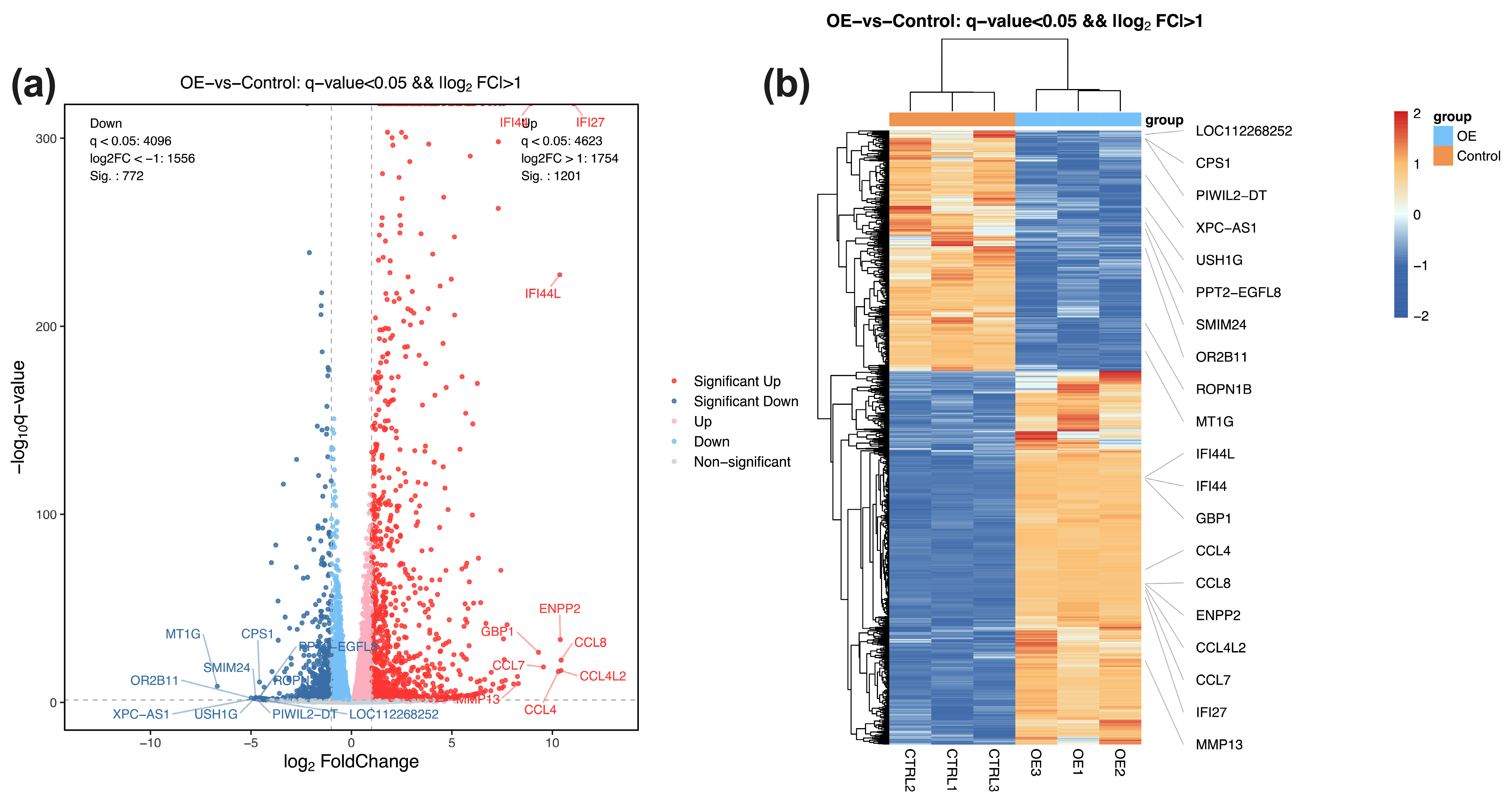 4.4. Differential Gene Expression Analysis Between Transfected and Control Groups