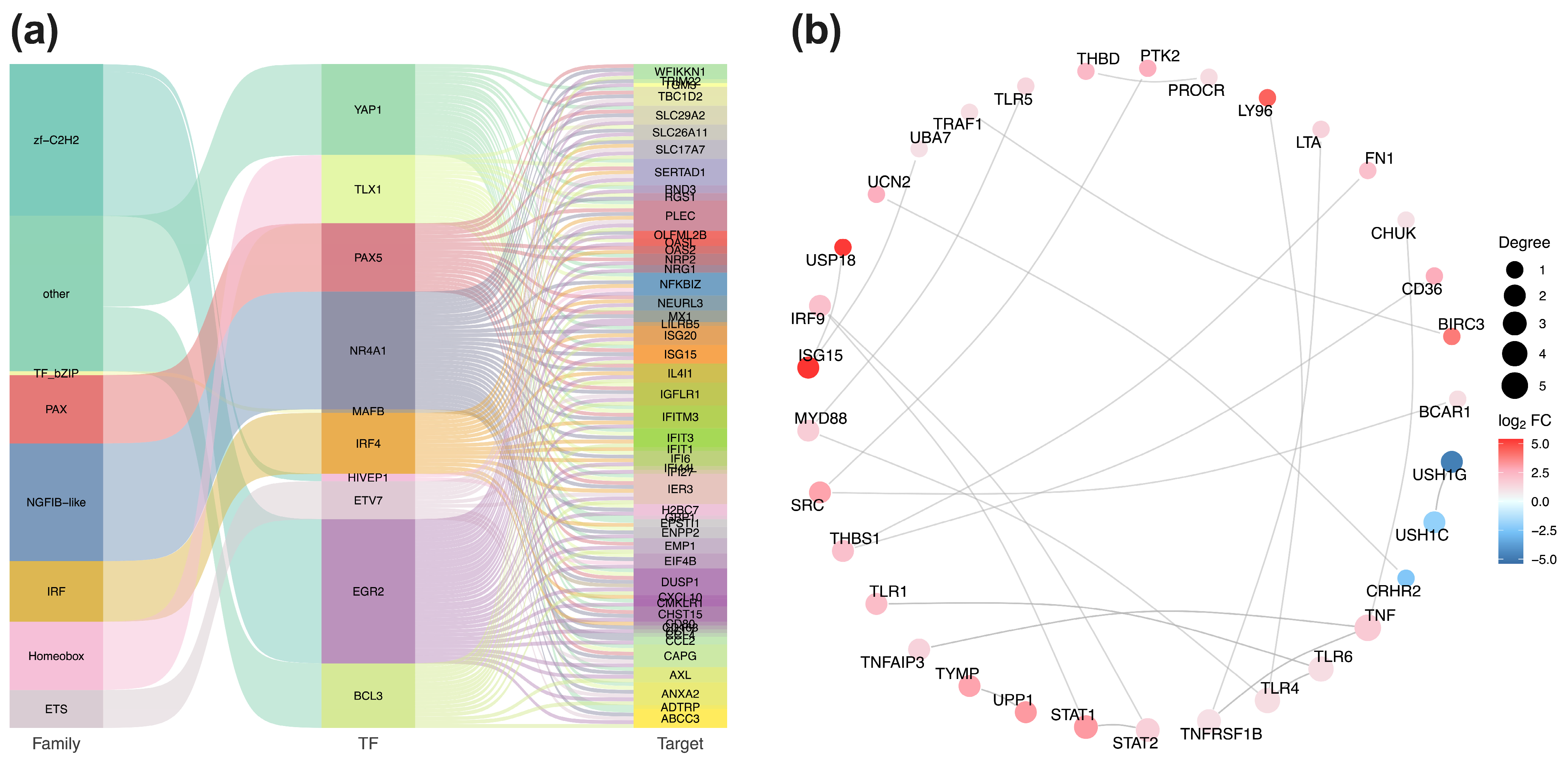 2.5. Analysis of Transcription Factor and Target Gene Prediction