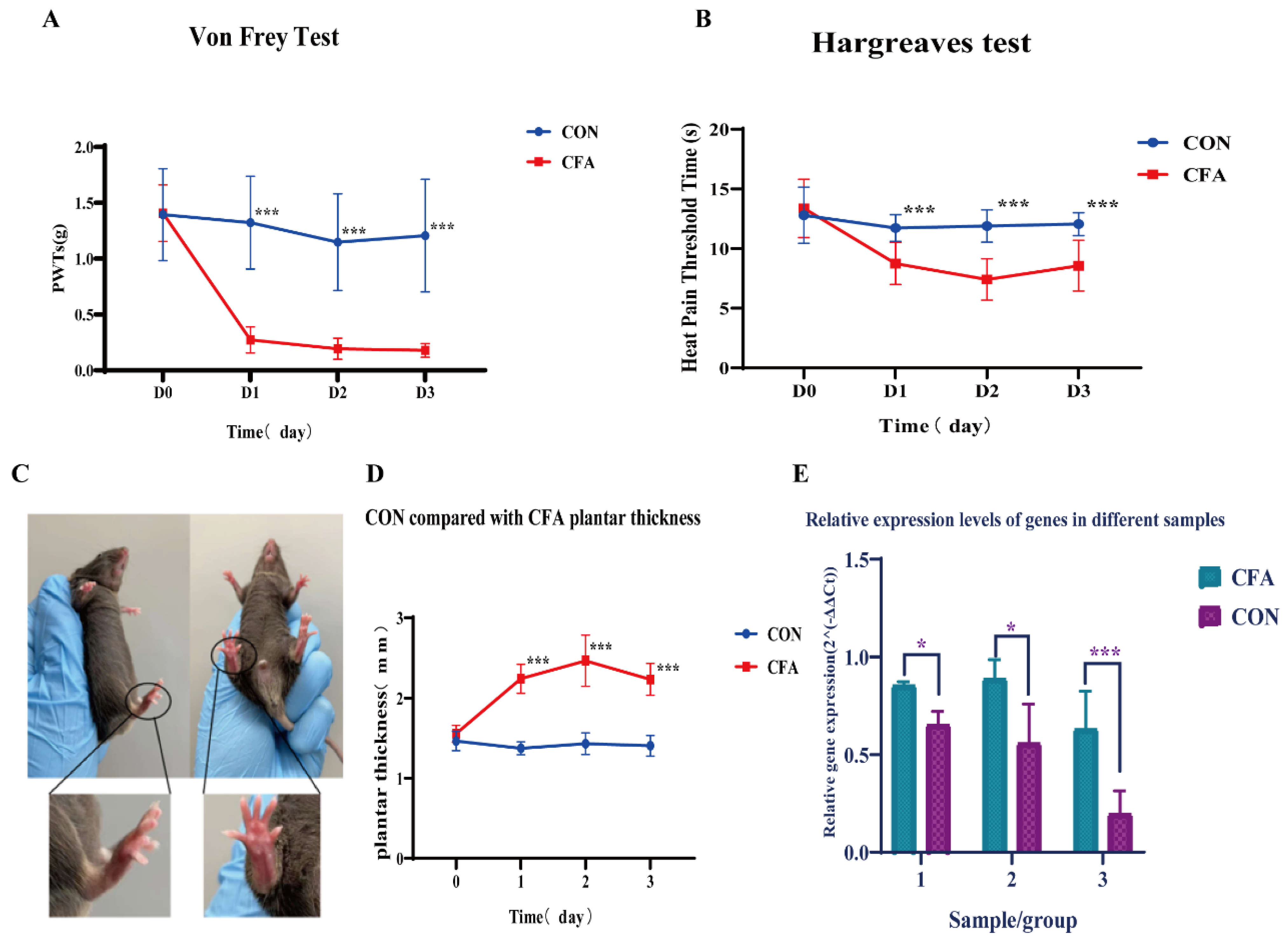 2.7. Establishment of the CFA-Induced Inflammatory Pain Model and Tissue Collection