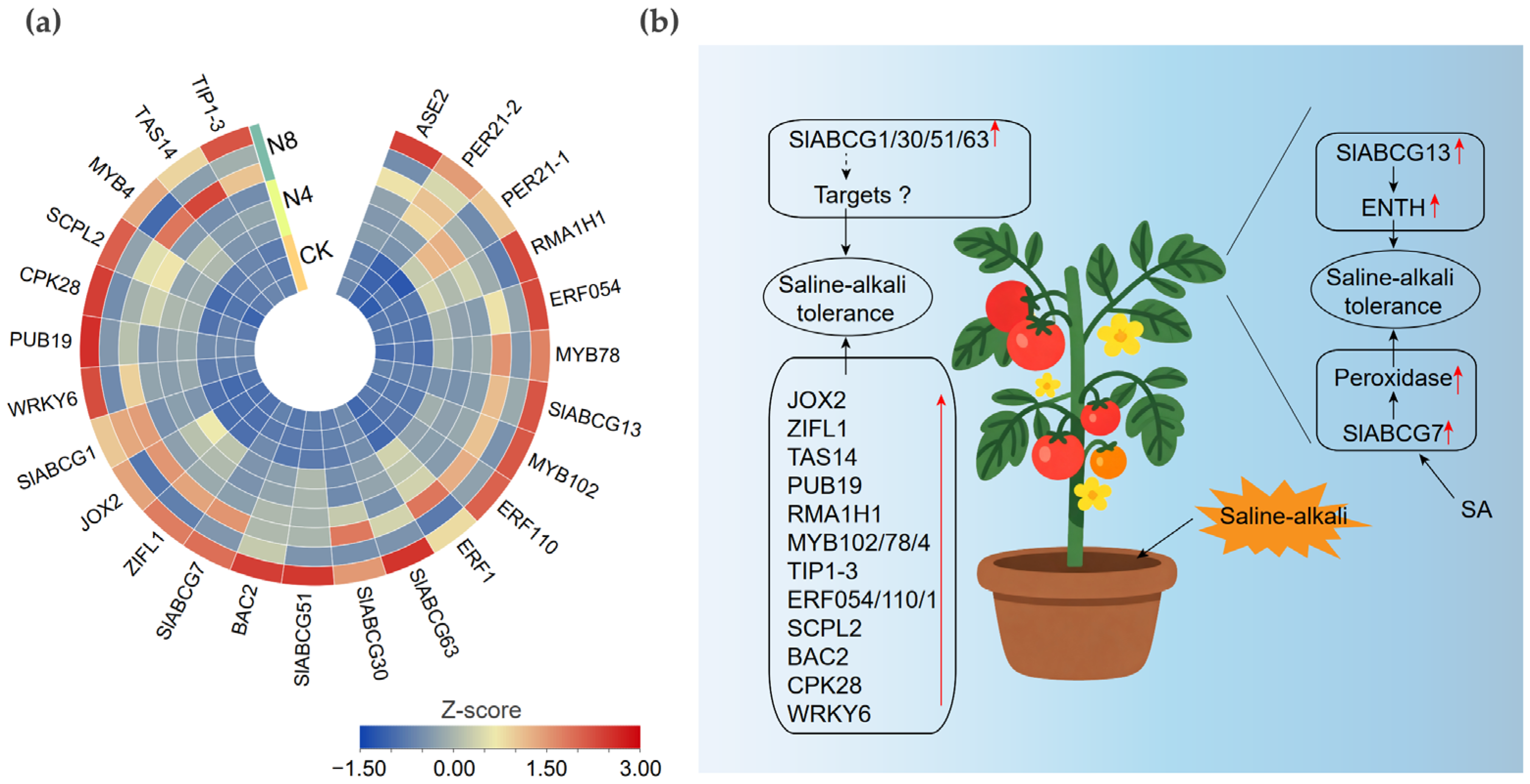 3.5. Function of SlABCG in Tomato Under Saline–Alkali Stress