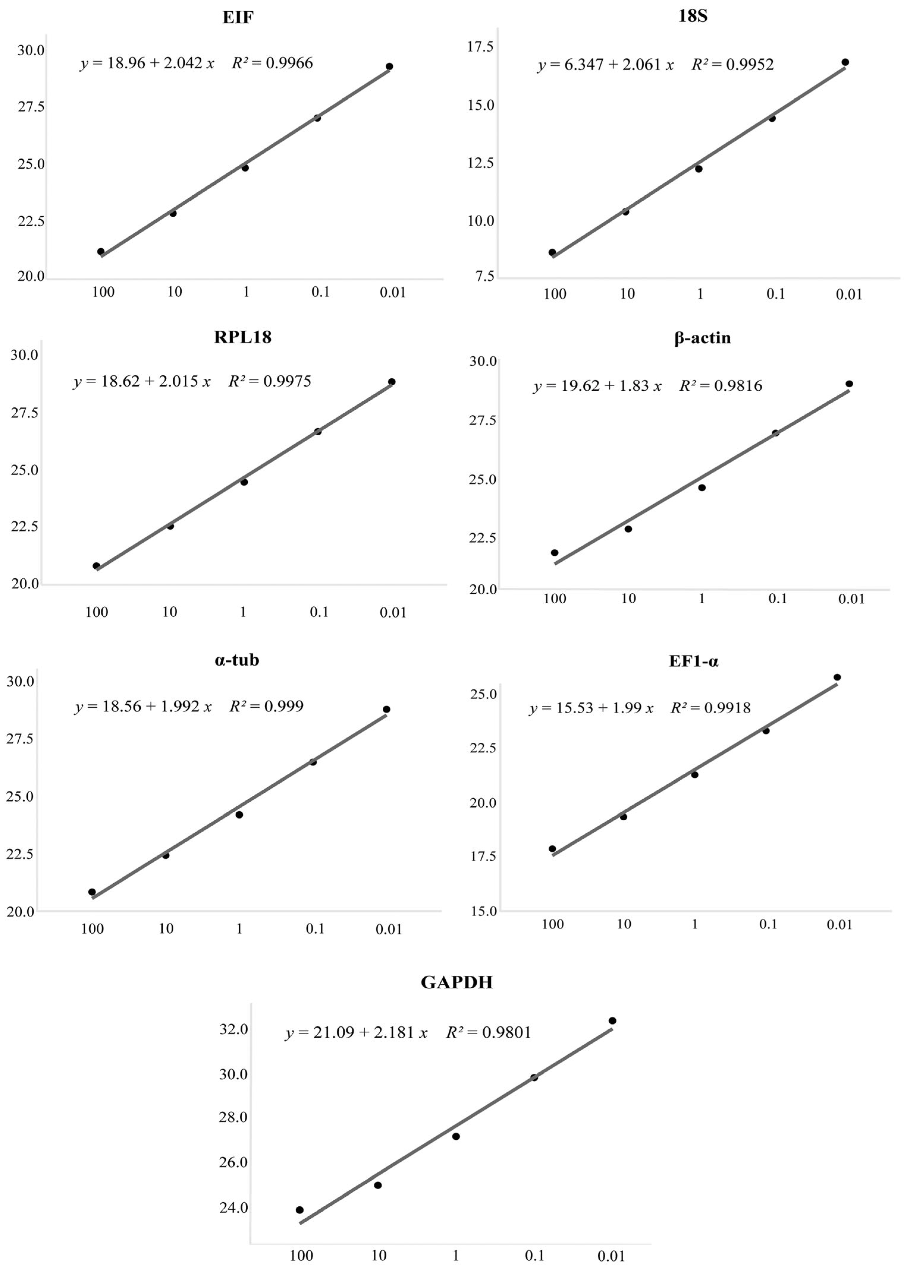 | EF1-α | F: TGTACCCATCATTCCCATTTC | 120 | 42.9 | 60 | 100.68 | 0.9918 |