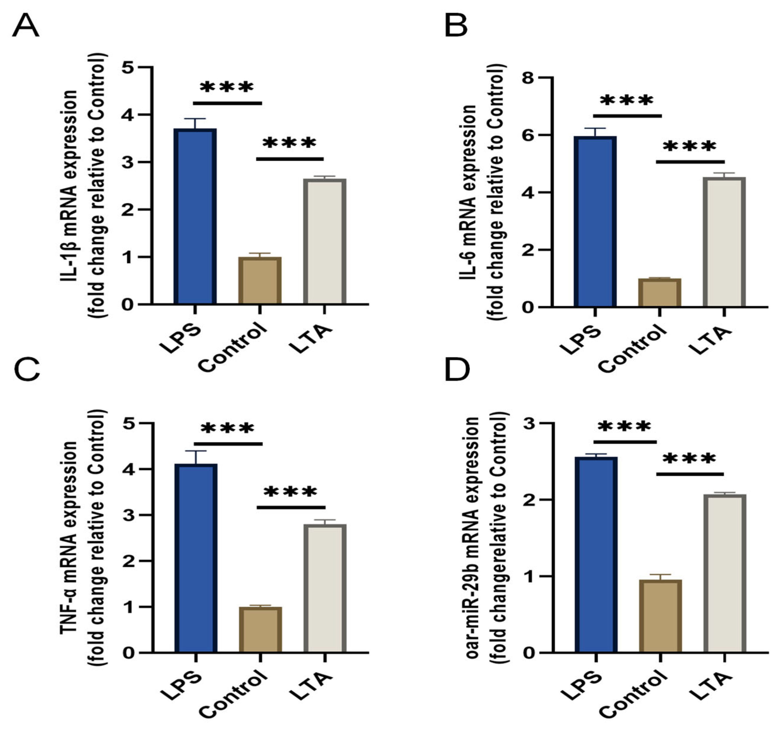 Figure 3A–C). Notably, oar-miR-29b expression was also significantly upregulated specifically in response to LTA stimulation (