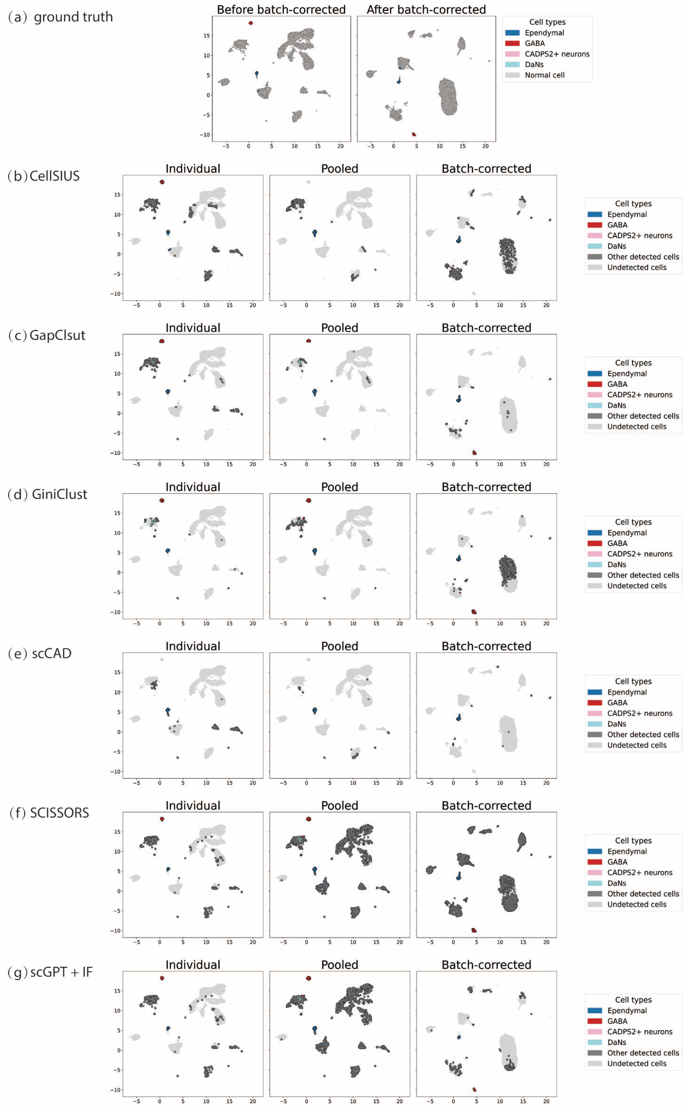 - Xu, Y.; Wang, S.; Feng, Q.; Xia, J.; Li, Y.; Li, H.-D.; Wang, J. scCAD: Cluster Decomposition-Based Anomaly Detection for Rare Cell Identification in Single-Cell Expression Data. Nat. Commun. 2024, 15, 7561. [Google Scholar] [CrossRef]