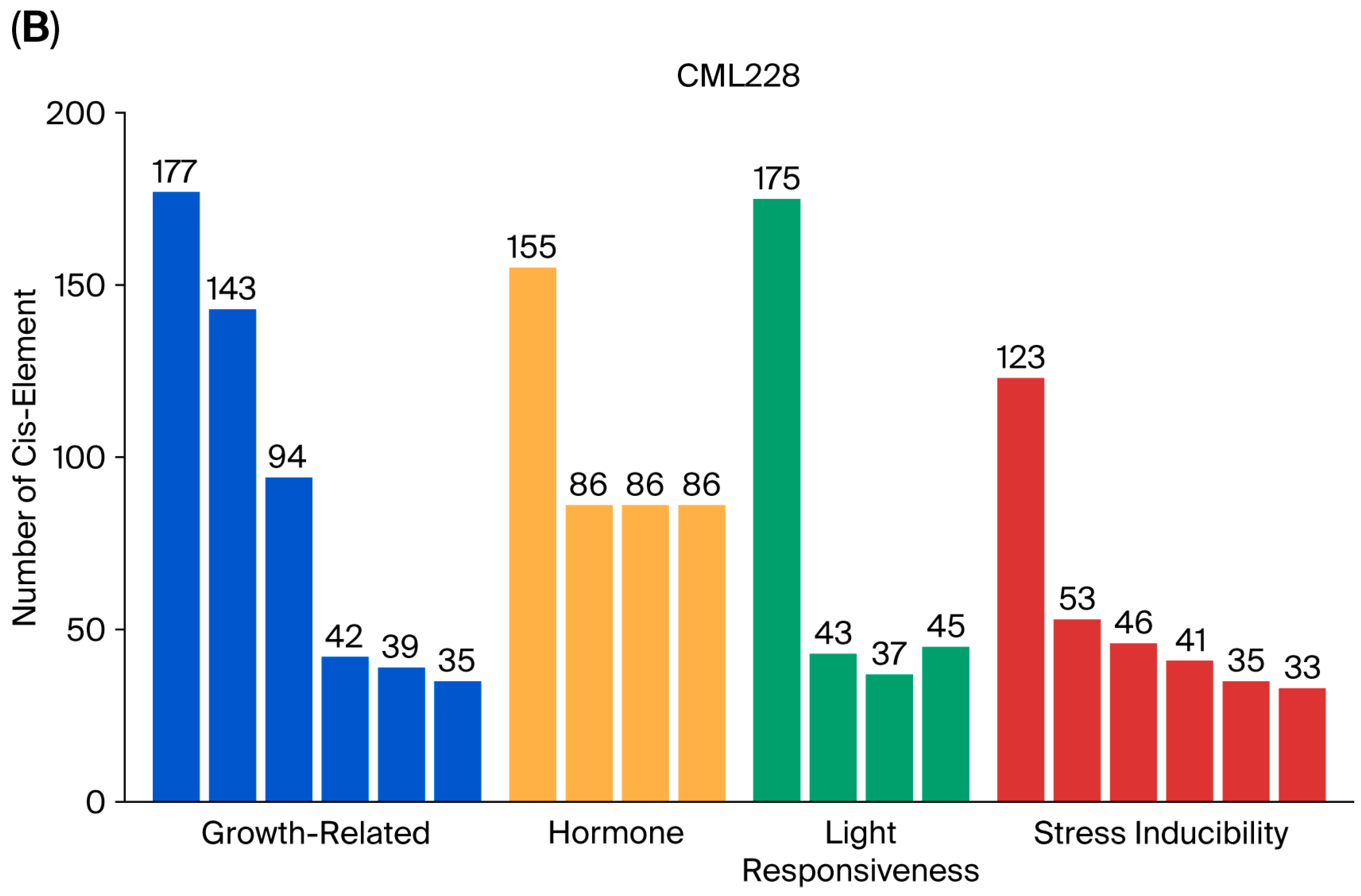 3.3. Analysis of Promoter Cis-Acting Elements