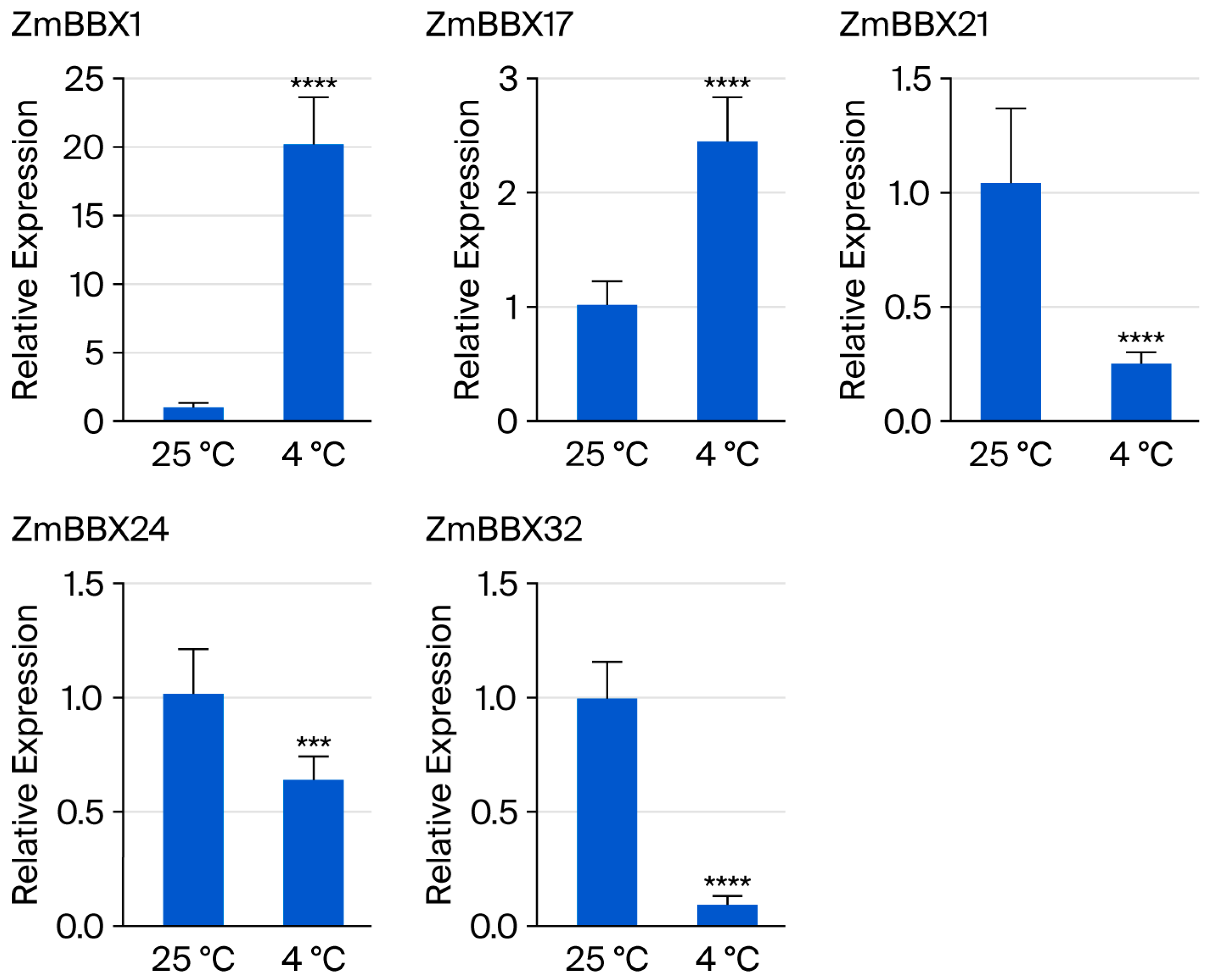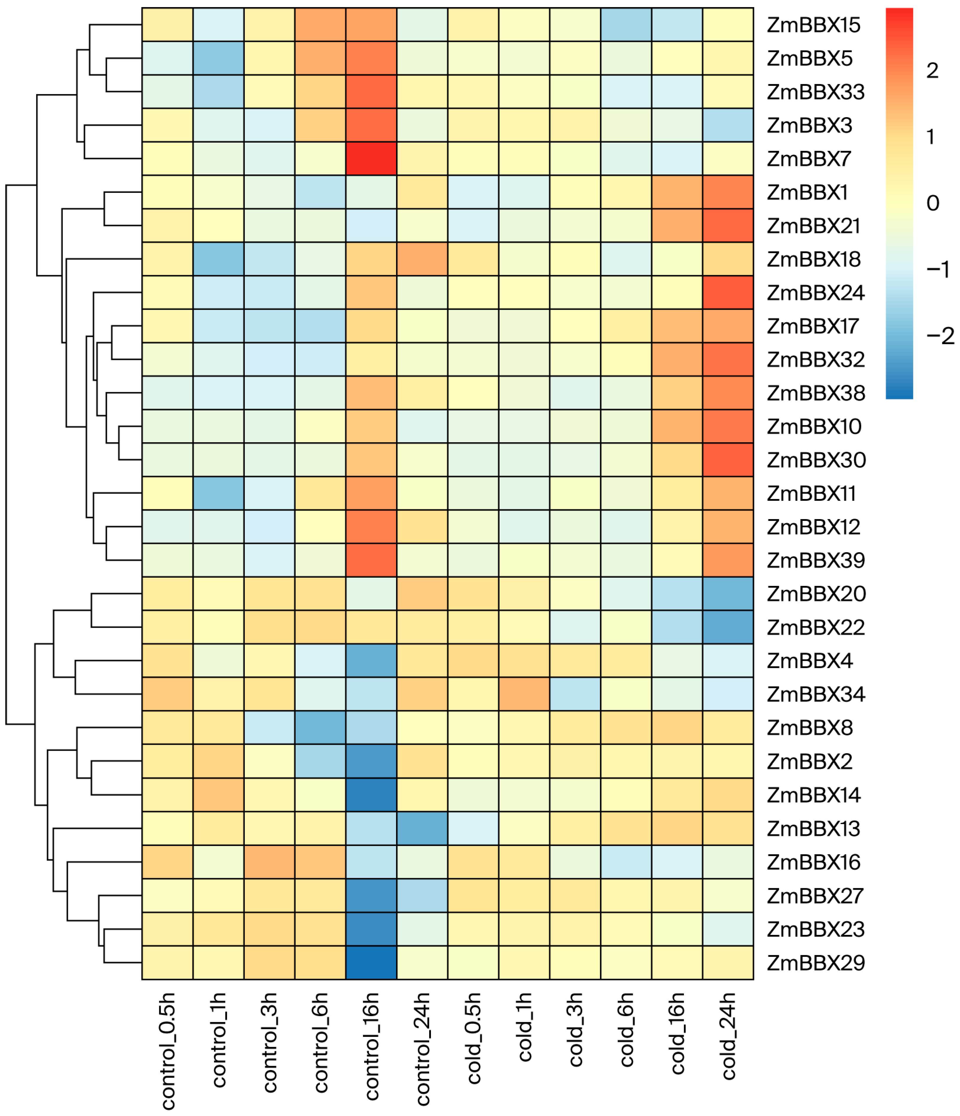 3.7. Response of BBX Genes to Cold Stress