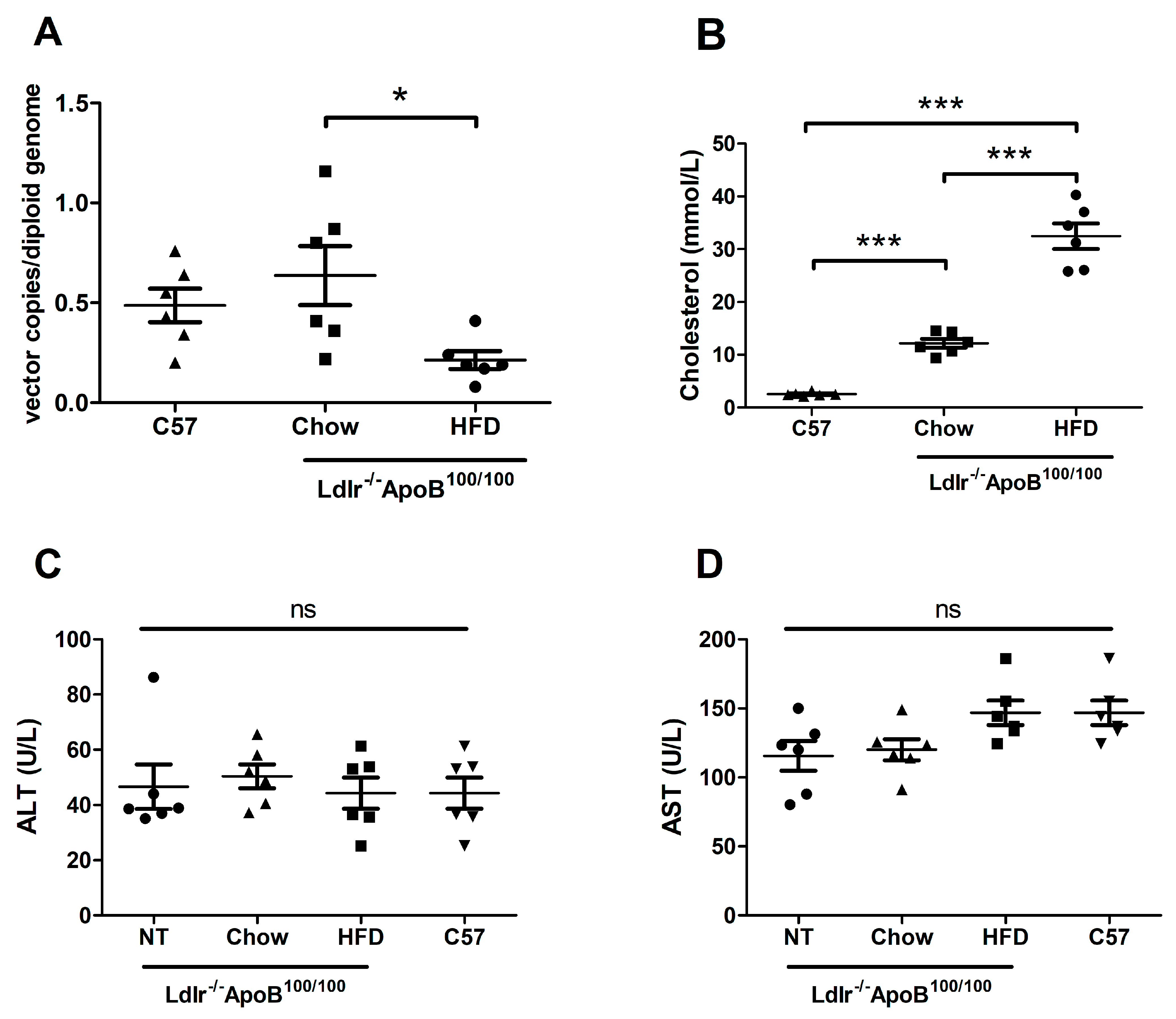 3.3. HFD Reduces LCMV-LV-Mediated Gene Transfer to Ldlr-KO Mouse Liver