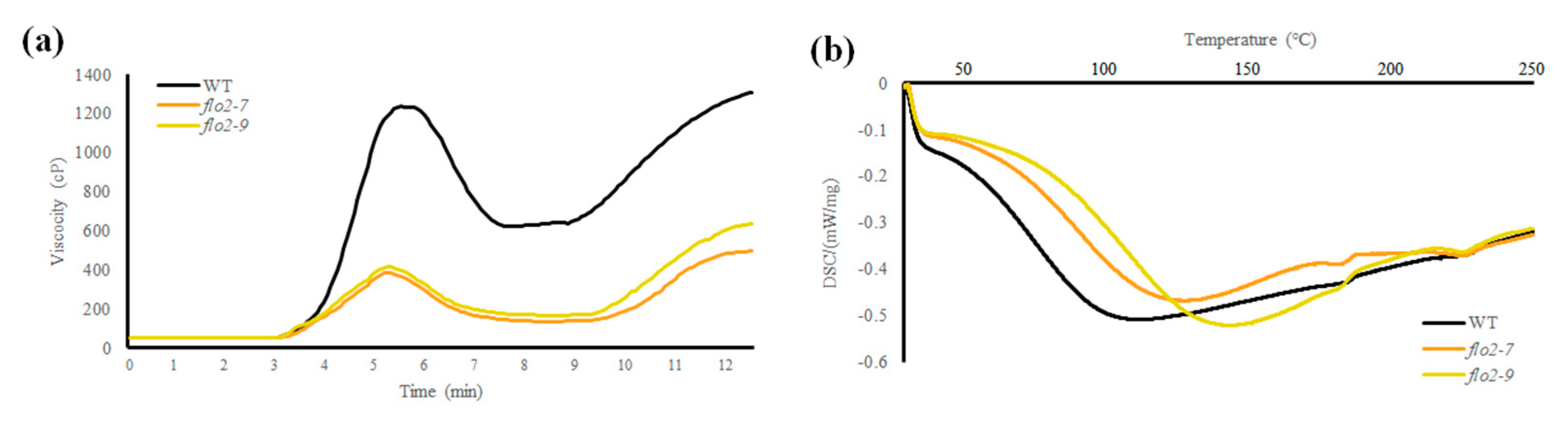 - Ida, T.; Crofts, N.; Miura, S.; Matsushima, R.; Fujita, N. Structure and Properties of Starch in Rice Double Mutants Lacking Starch Synthase IIa and Starch Branching Enzyme IIb. J. Appl. Glycosci. 2021, 68, 31–39. [Google Scholar] [CrossRef]