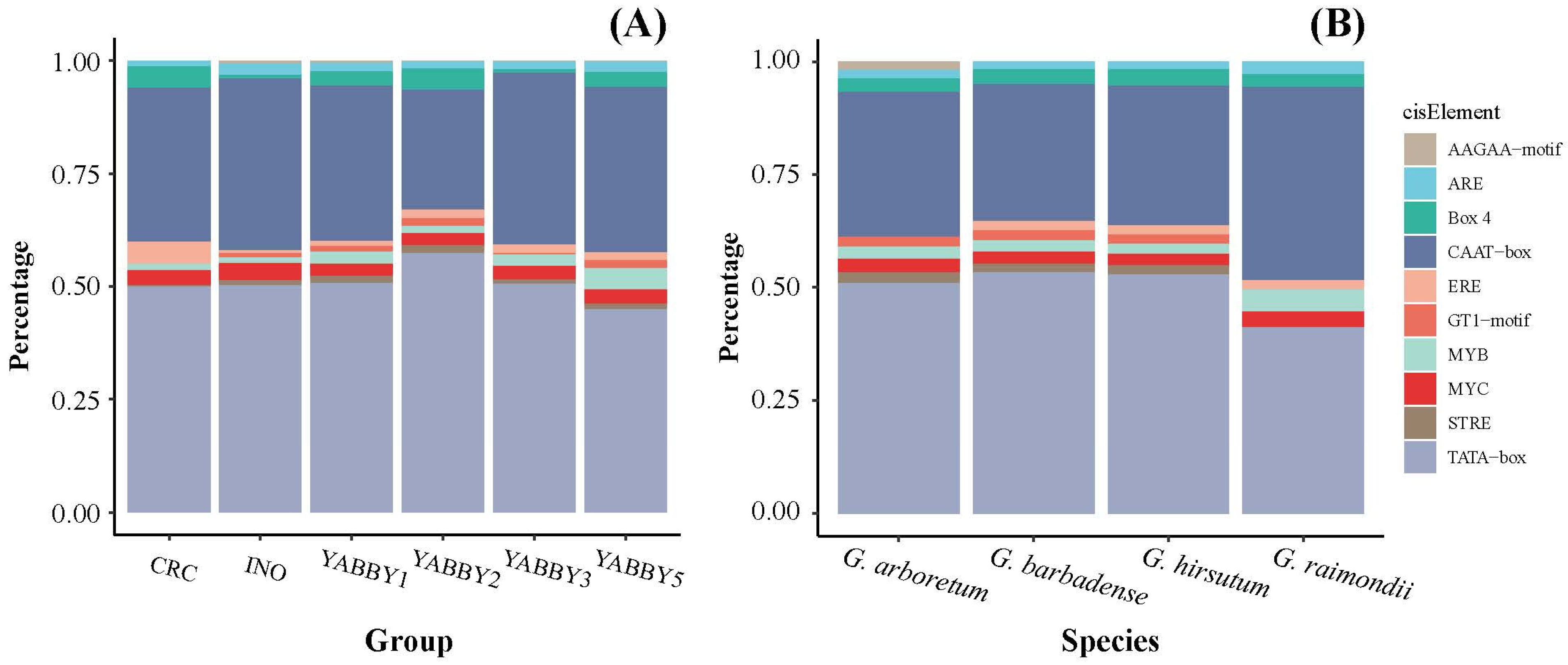 3.4. Key Cis-Element Analysis of Cotton YABBY Gene Family