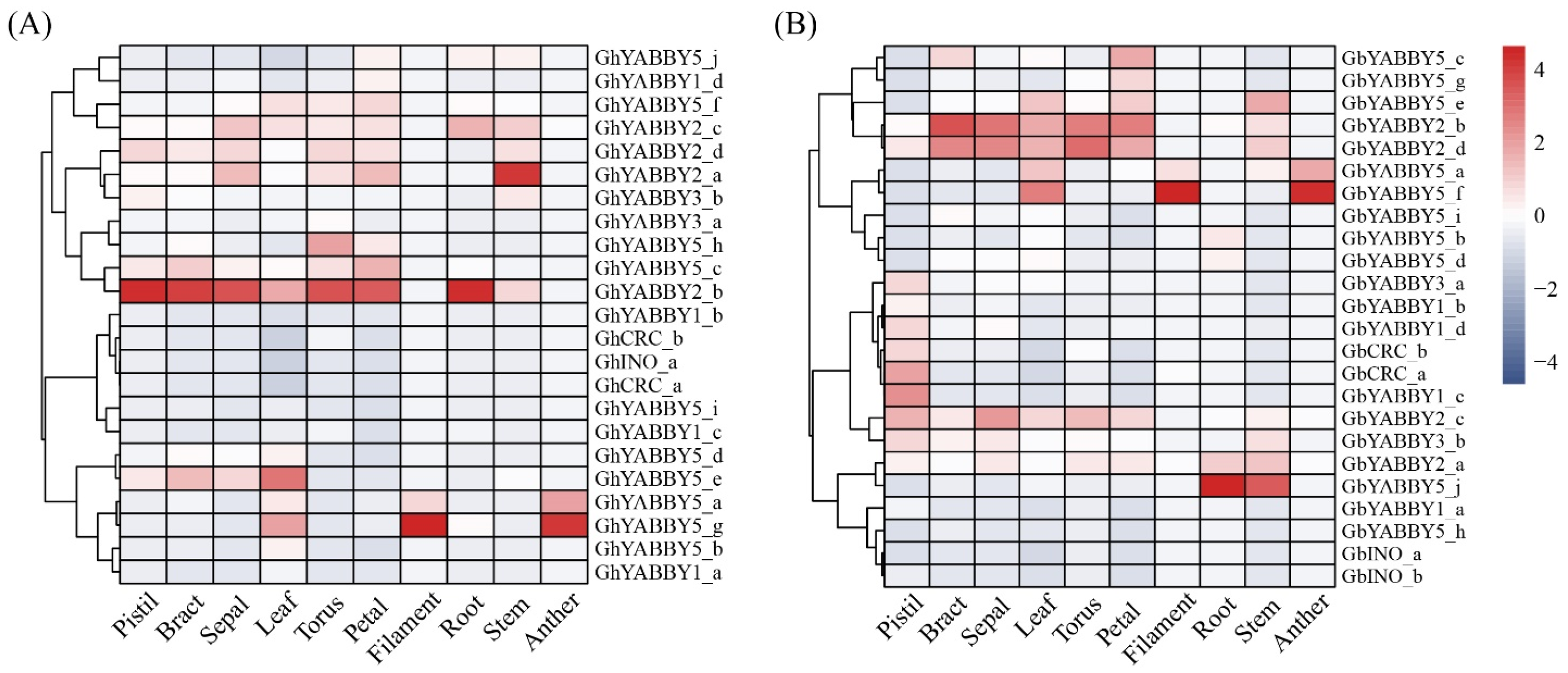 3.9. Expression of Cotton YABBY Genes in Different Tissues