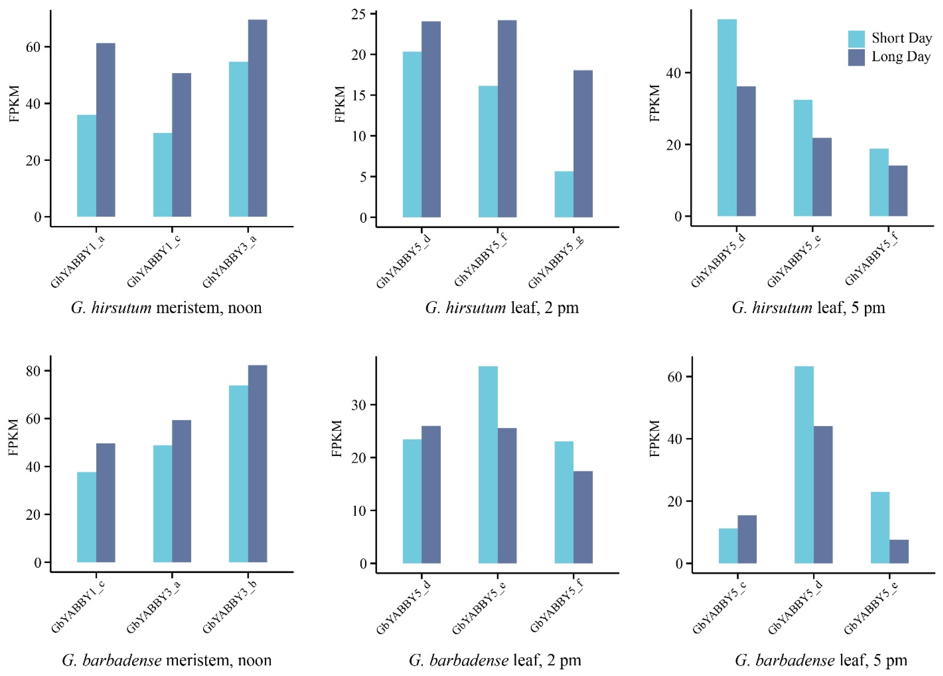 3.11. Expression Patterns of Cotton YABBY Genes in Long- and Short-Day Conditions
