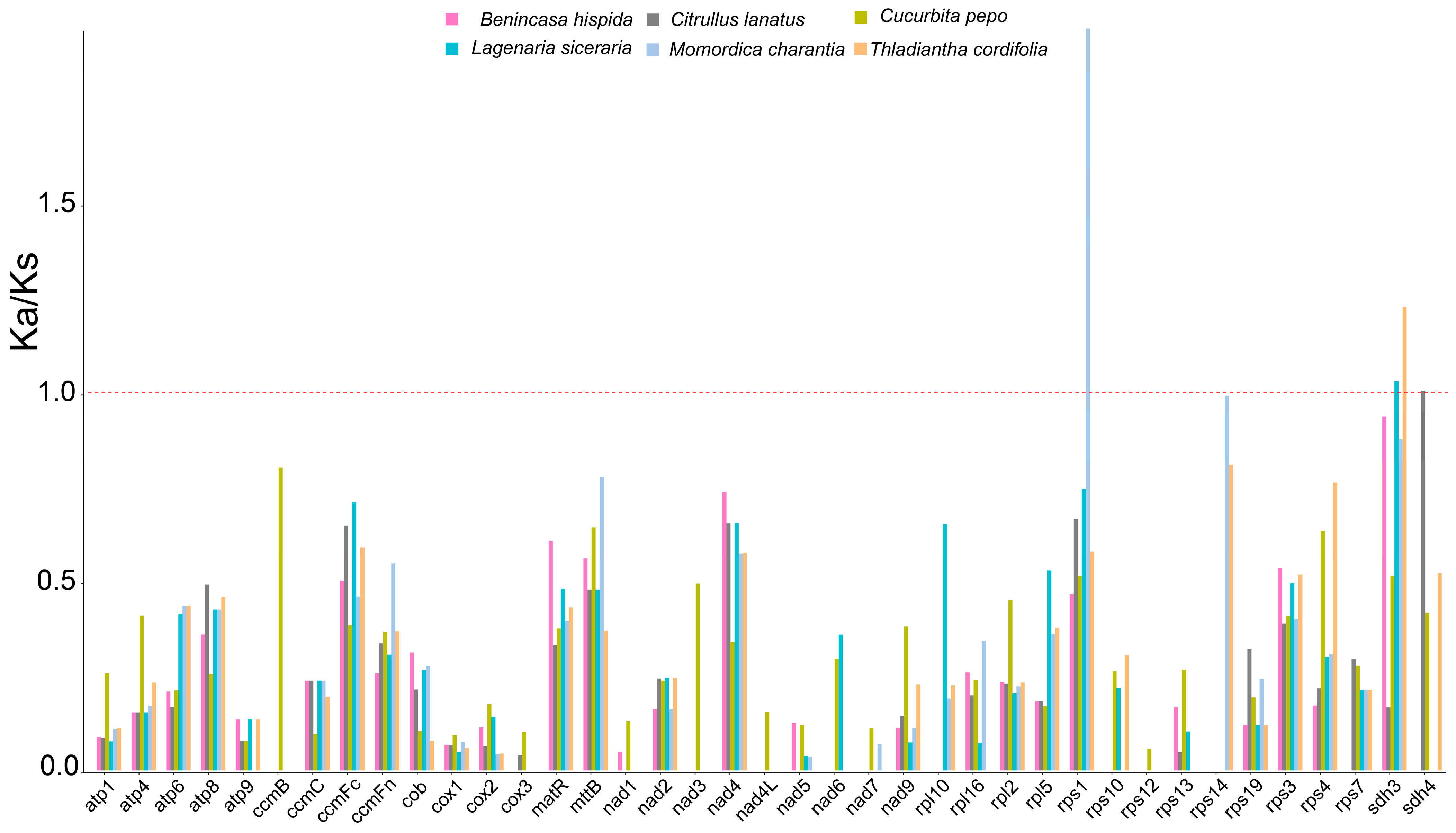 - Chetri, B.K.; Sonu, S.S.; Dierckxsens, N.; Mitra, S.; Rangan, L. Insights into Cucurbitaceae mitogenomes: Gene length variation, correlation features, and phylogenetic relationship. J. Plant Biochem. Biotechnol. 2025, 34, 992. [Google Scholar] [CrossRef]